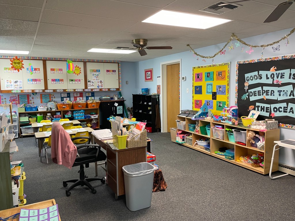 Our K4 (four-year-old) class meets three days per week: Monday, Wednesday, and Friday. The goal of the K4 program is to refine the skills introduced at K3, preparing students for Kindergarten. Each day, students begin with a Bible lesson, and then participate in subjects like story time, basic math, reading, writing, arts & crafts, and more. In K4, students also enjoy snack, recess/physical education, and guest speakers/presenters throughout the year.